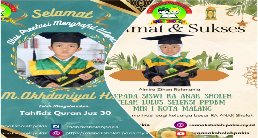 Semoga prestasi ini menjadi penyemangat bagi seluruh siswa RA Anak Sholeh lainnya untuk terus belajar, berdoa, dan berusaha menjadi anak yang membanggakan dunia dan akhirat.